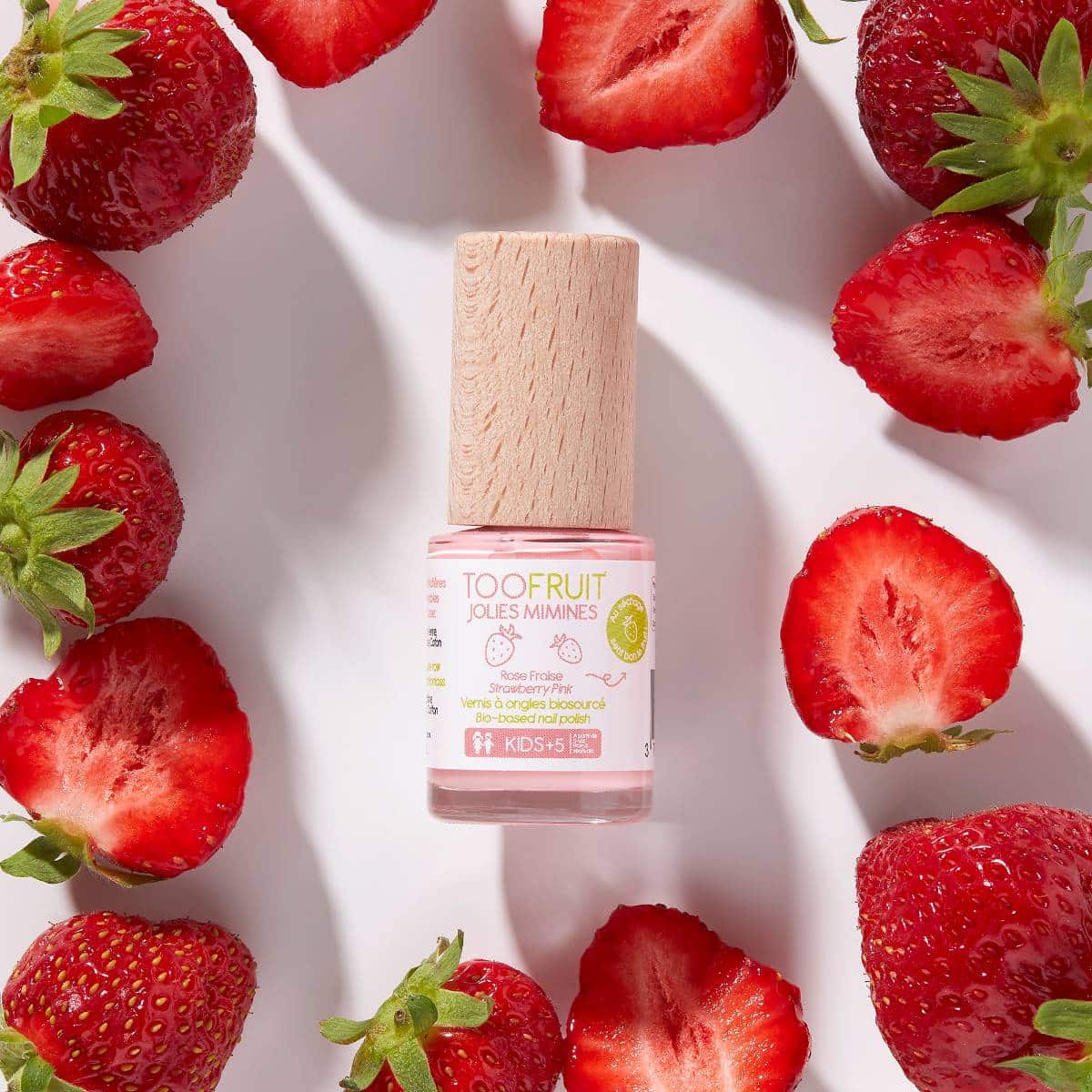 Voici de quoi exaucer ce vœu avec Jolies Mimines Fraise, un vernis à ongles biosourcé pour enfants.