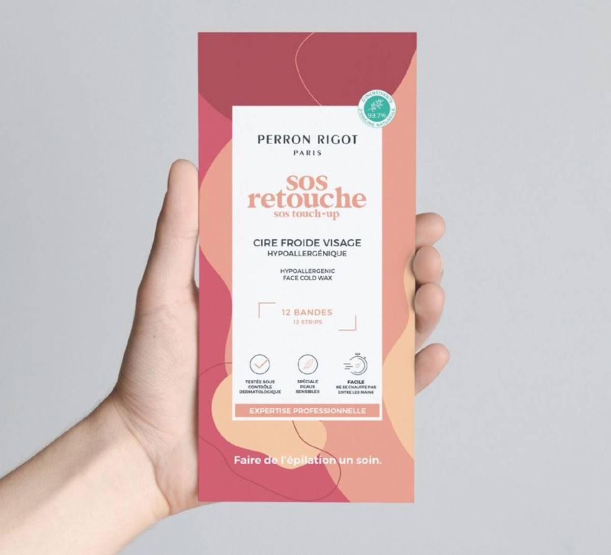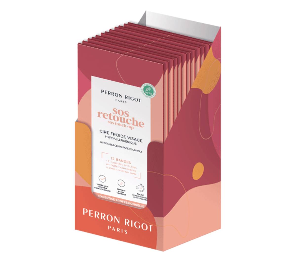 Un Kit épilation nomade, idéal pour parer à l’imprévu !   ” Un week-end  improvisé, et vous n’avez pas le temps d’aller chez votre Esthéticien(ne) préféré(e) pour retirer ces quelques poils disgracieux ? ”   Proposez une solution ” SOS ” à vos client(e)s, facile à utiliser et pratique à emporter pour un résultat professionnel et une retouche qui sauve en toute circonstance !   Adieu la tentation d’utiliser un rasoir, bonjour une retouche dans les règles de l’art !   Nos bandes de Cire Froide Visage sont adaptées aux peaux sensibles grâce à leur formule hypoallergénique, composée de 99,7% d’ingrédients d’origine naturelle. Efficaces sur tous les poils, elles sont faciles à utiliser : plus besoin de les chauffer entre ses mains, elles sont directement prêtes à l’emploi.   Les + produit : – Formule hypoallergénique testée sous contrôle dermatologique et adaptée aux peaux sensibles pour éviter le risque de réactions allergiques – 99.7% d’ingrédients d’origine naturelle – Expertise professionnelle Perron Rigot depuis plus de 80 ans  – Pas besoin de les chauffer entre les mains !   Vendues par boîte prête à vendre de 12 pochettes, avec notice d’utilisation.